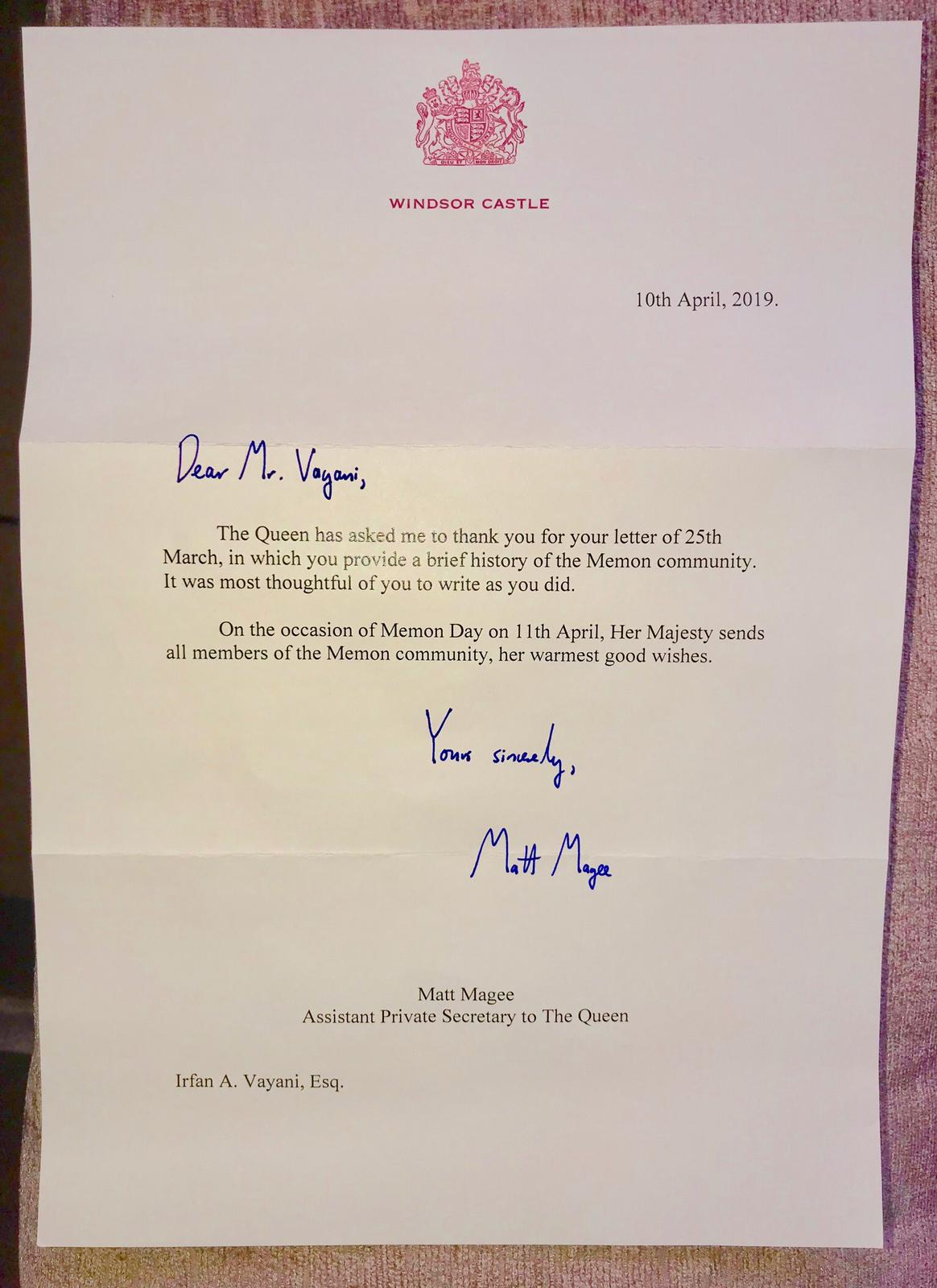 HM Elizabeth Ⅱ Queen of the United Kingdom and the other common wealth realms send her best wishes to Memon community on the occasion of World Memon Day